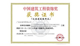 广东省装饰有限公司承建的广州白云国际机场扩建工程二号航站楼贵宾室、两舱休息区及相关配套装修工程(2标段)工程荣获2019-2020年度中国建筑工程装饰奖。